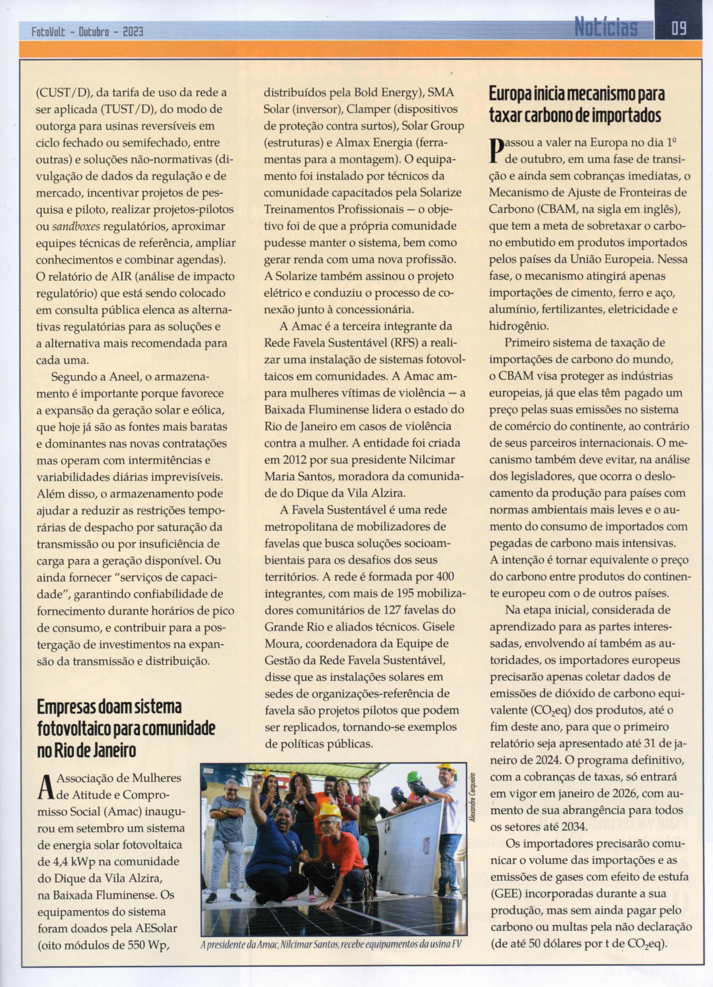 Fotovolt 10/2023: Empresas doam sistema fotovoltaico para comunidade no Rio de Janeiro