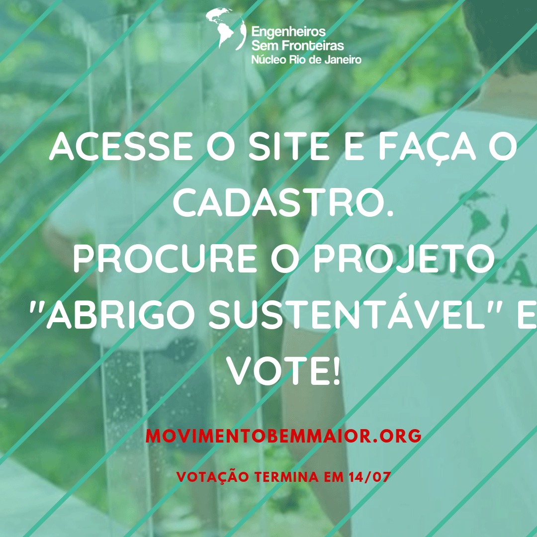 Ajude a eles de conseguir uma verba de R$ 100 mil! Cadastre-se no site Movimento Bem Maior e confirme seu e-mail. Depois, procure pelo projeto "Abrigo Sustentável" e vote nele.