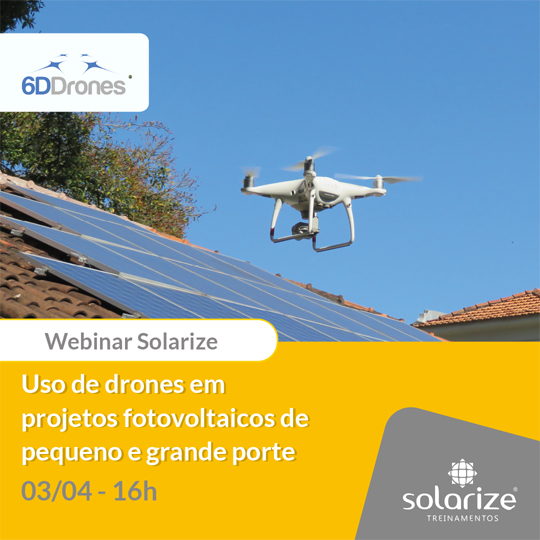 Esta semana o webinar da Solarize tratará do tema Drones como ferramenta de trabalho em usinas fotovoltaicas de pequeno e grande porte.