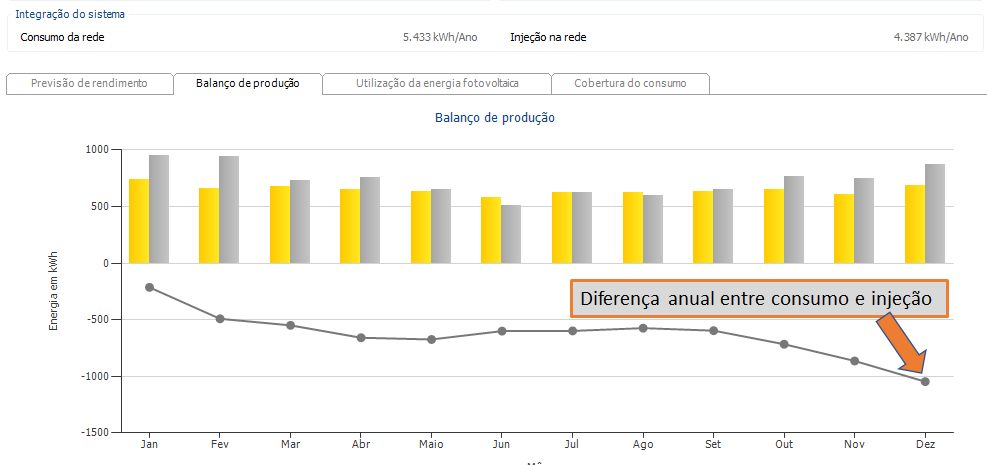 Você já conhece o diagrama acima de projetos em "net-metering". Ele não estava disponível em projetos com "injeção de excedente", necessários para modelar as tarifas da lei 14.300. Solicitamos a inclusão, para poder visualizar a geração e o consumo a cada mês, e fomos atendidos.